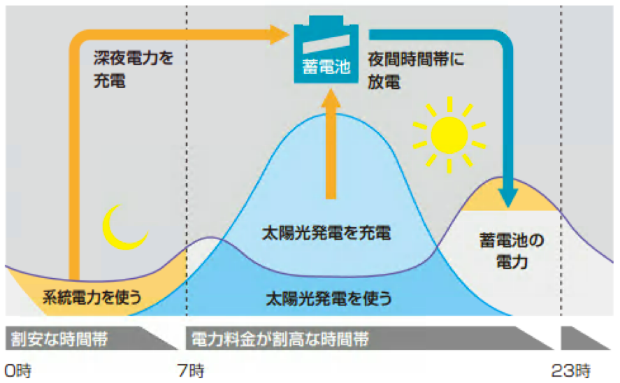 その為、朝方、夕方に使用する蓄電量が少ないと予測する場合には、深夜電力も充電します。